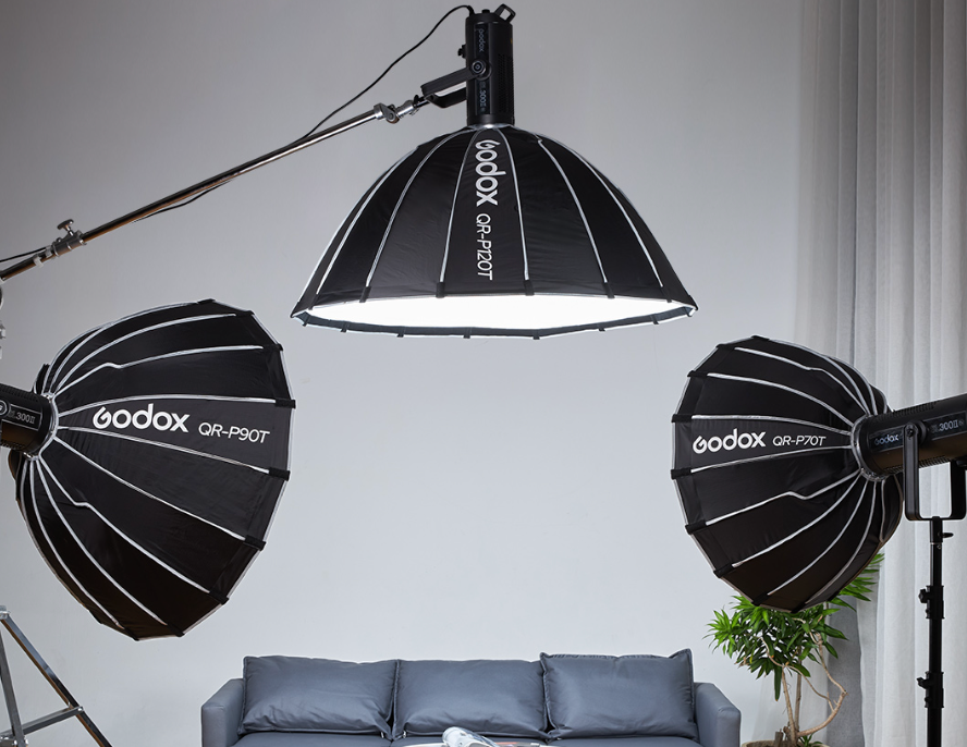 - Godox Parabolic QR-P90 / QR-P120 — параболические модели с глубоким световым рисунком и удобной системой быстрой сборки.
